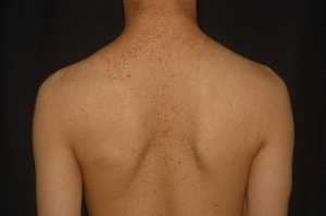 3.手術 過去曾採行磨去皮膚疤痕之手術(Dermabrasion),以使患者角化過度的皮膚較為平坦,對於局部採電切術(Electrosurgery)及Mohs顯微攝影手術(Mohs micrographic surgery)發現都有不錯的效果。
